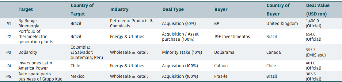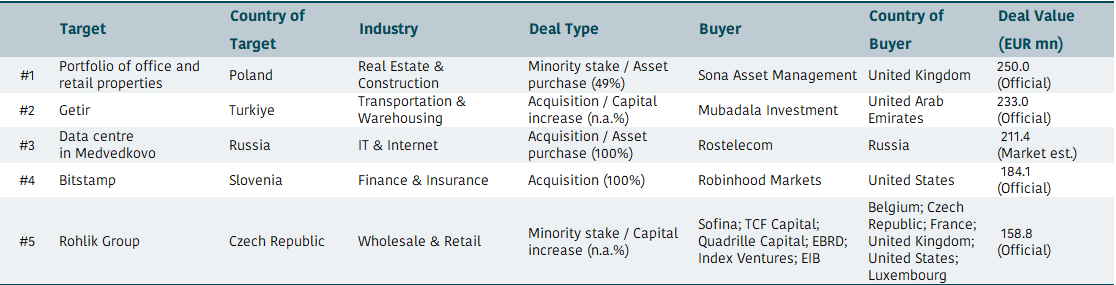 June 2024 top M&A deals in emerging markets by region