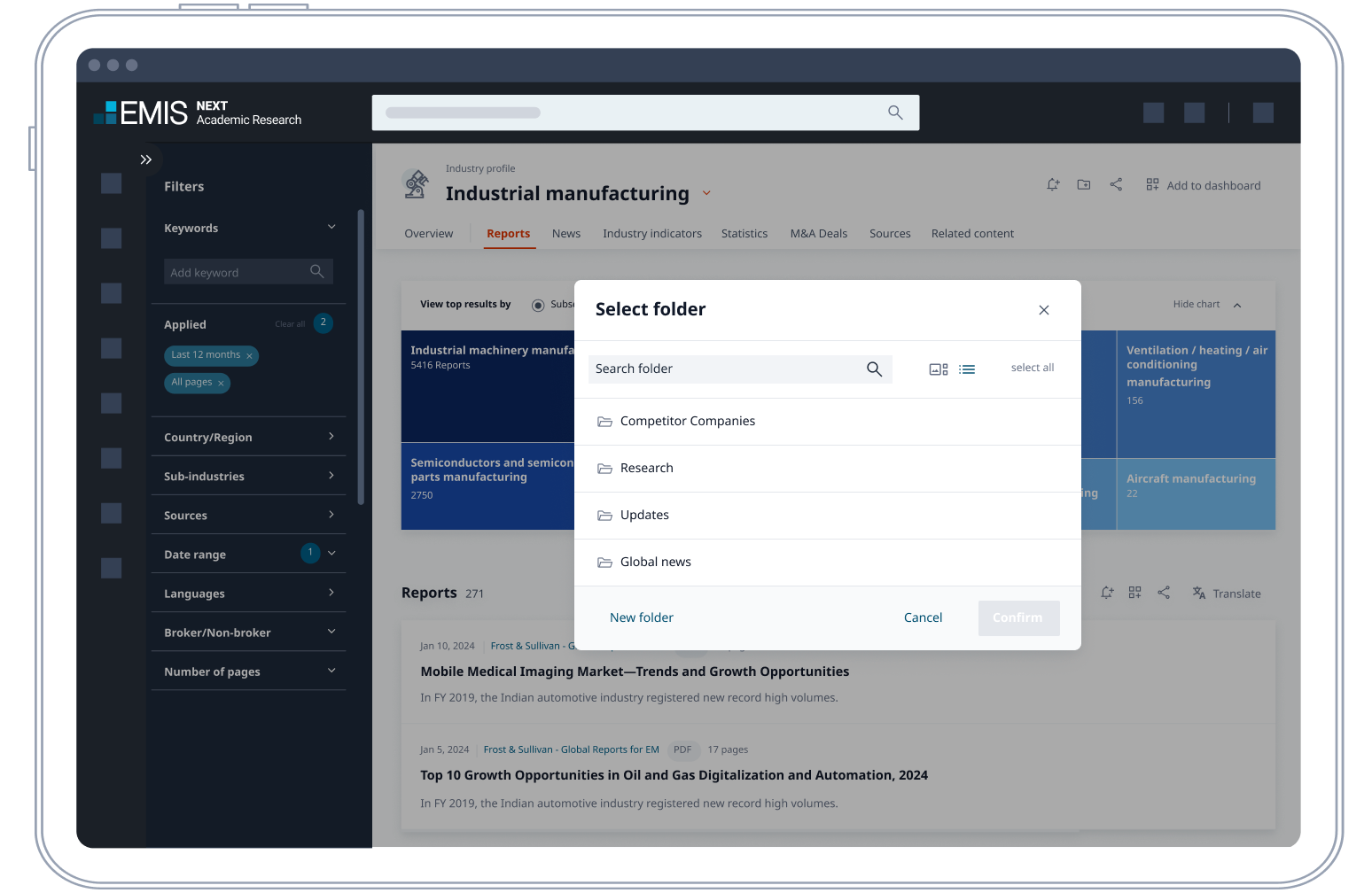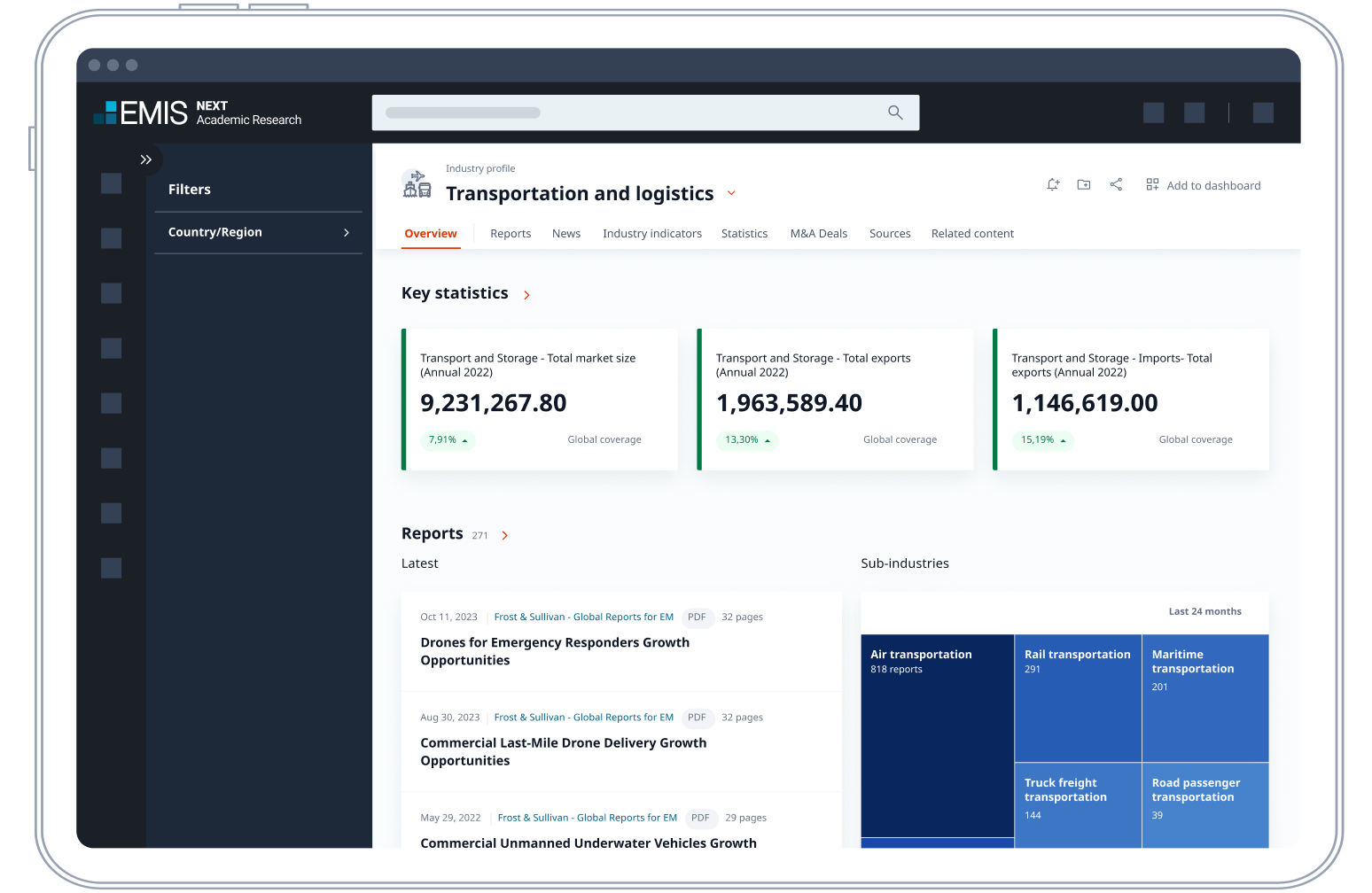 Analizuj istotne sektory, rynki i spółki, aby wspierać projekty badawcze związane z najszybciej rozwijającymi się rynkami globalnymi.